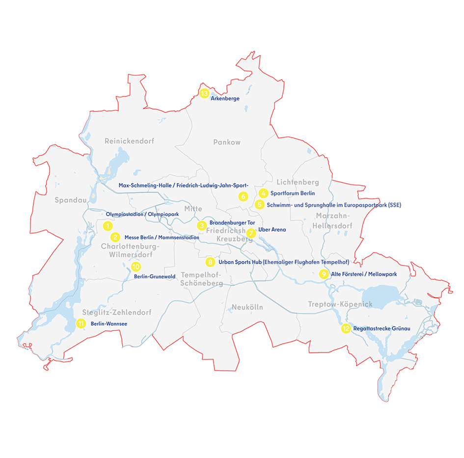 Dabei bauen wir auf das auf, was bereits vorhanden ist, und entwickeln es weiter. Bestehende Sportstätten, urbane Räume und Infrastrukturen werden modernisiert, nachhaltig ertüchtigt und so genutzt, dass sie auch nach den Spielen Teil des Berliner Alltags sind. Wo neue Infrastruktur entsteht, geschieht dies dort, wo sie gebraucht wird – mitten in der Stadt und mit klarem Mehrwert für die Menschen.